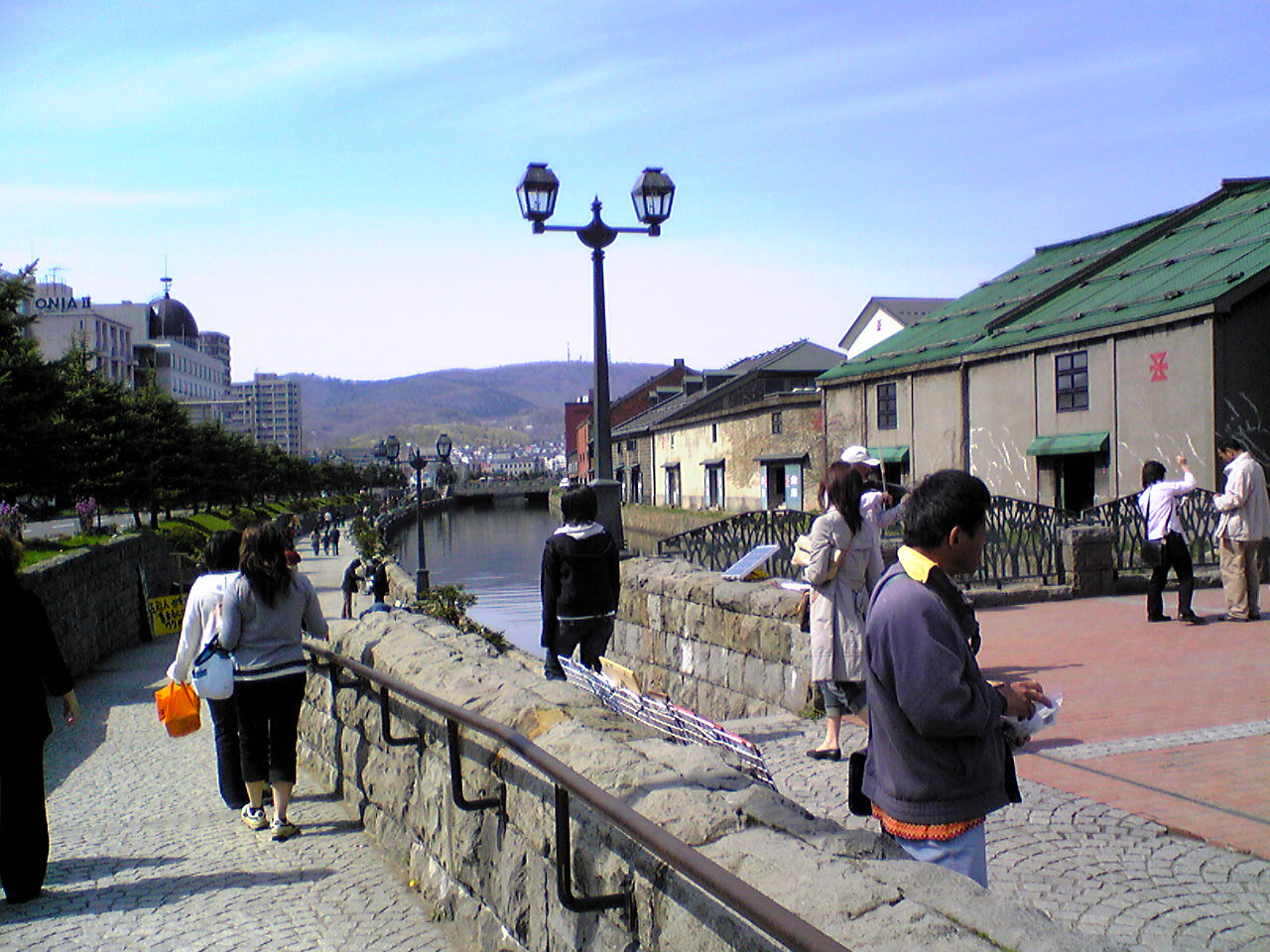 色んなお店で試食しまくって、北菓楼の紙袋ぶらさげて、運河で写真撮って…