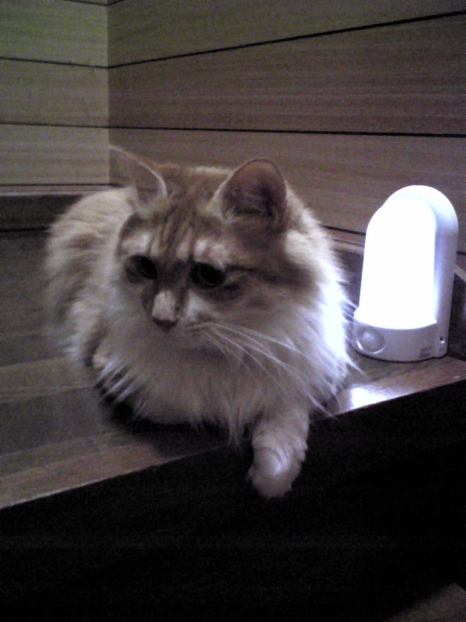 センサーで人影に反応して点く常夜灯(?)を、踊り場に置くことにしました