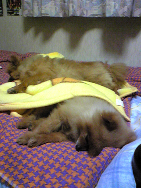 クリンがマロンの上に登って、重なって寝ちゃったそうです。