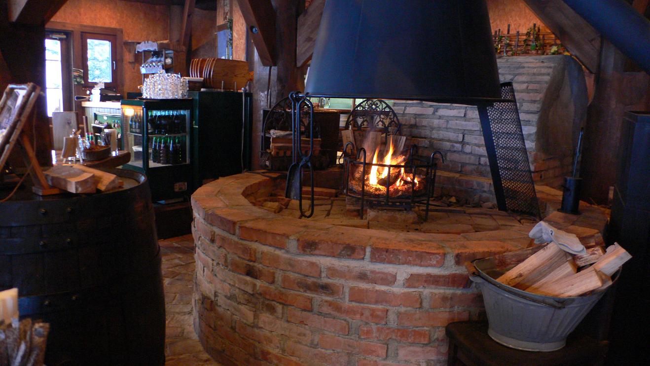 お店の中央には大きい暖炉があって、『自由に薪を入れてください』と言われてなんだかステキ