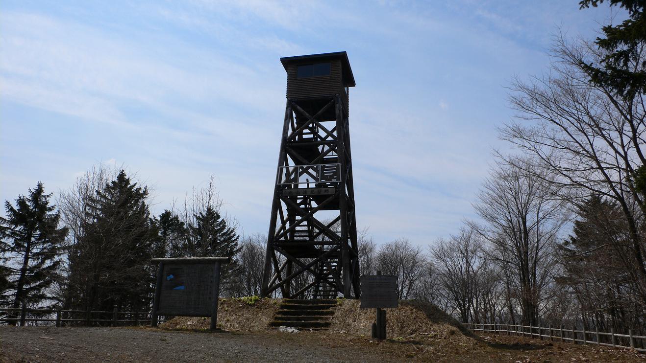 入り口から歩いて一時間くらい緩やかに登っていくと、火の見櫓のような建物があります