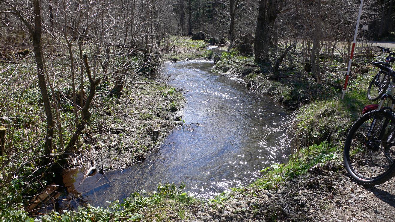 でも、途中に小川が流れていて