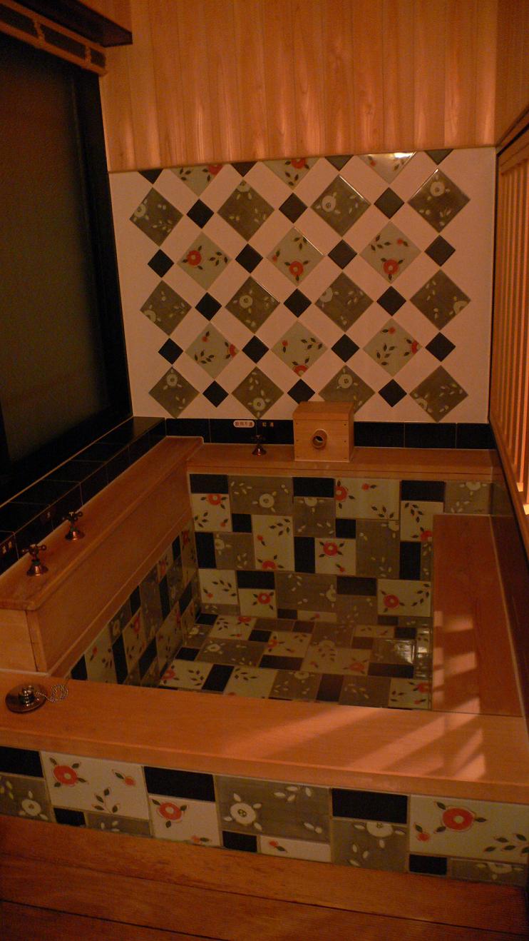 でも、最近改装したばかりという旅館のお部屋には、源泉掛け流しの、こ~んな可愛いお風呂があって
