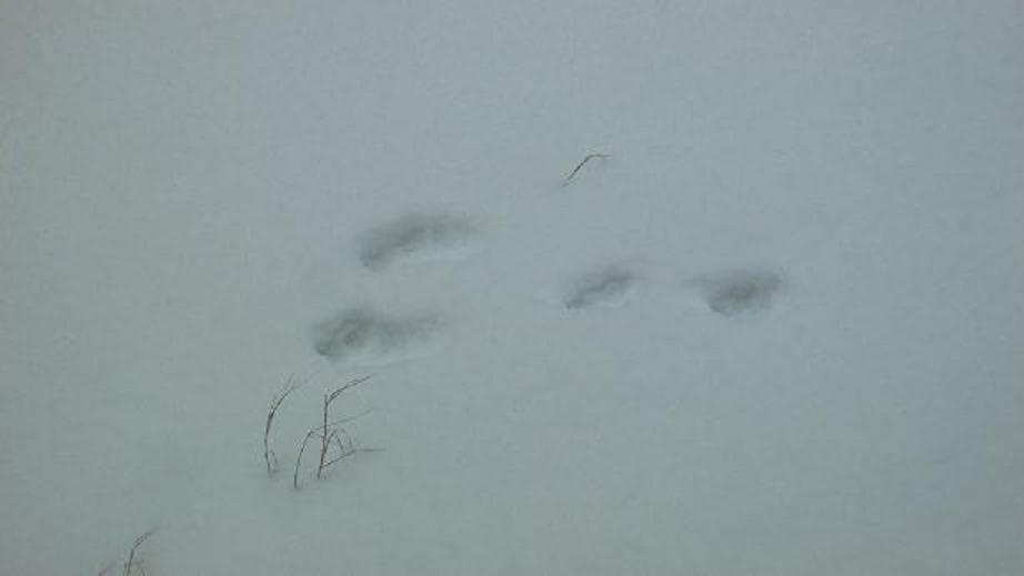 うちの父によると、まっすぐ縦に並んだ足跡はキツネらしいので、上の写真の足跡はキツネのようです