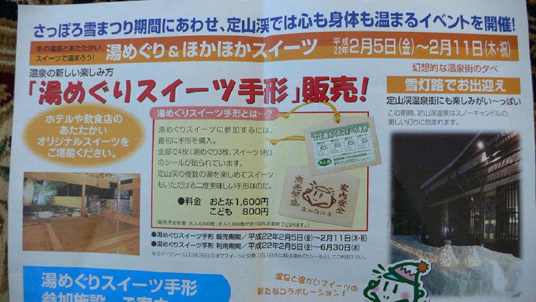 1600円で、定山渓温泉の3ヶ所の湯めぐりと、スイーツがゲットできるという、温泉好き&甘党な私たちにはもってこいのイベント!!