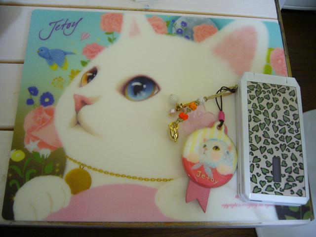 お土産に、きゃわゆいニャンコのマウスパッドとストラップも買って