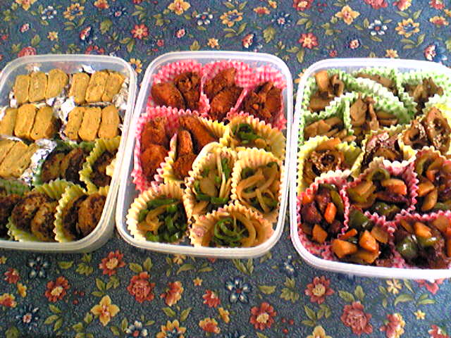 100円ショップで売ってる仕切りの付いたタッパーにおかずを入れて冷凍して、自家製冷凍食品を作ると便利。