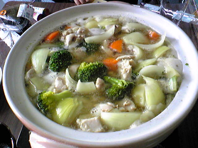材料はお好みで、鶏肉、じゃがいも、にんじん、玉ネギ、ブロッコリーなど。