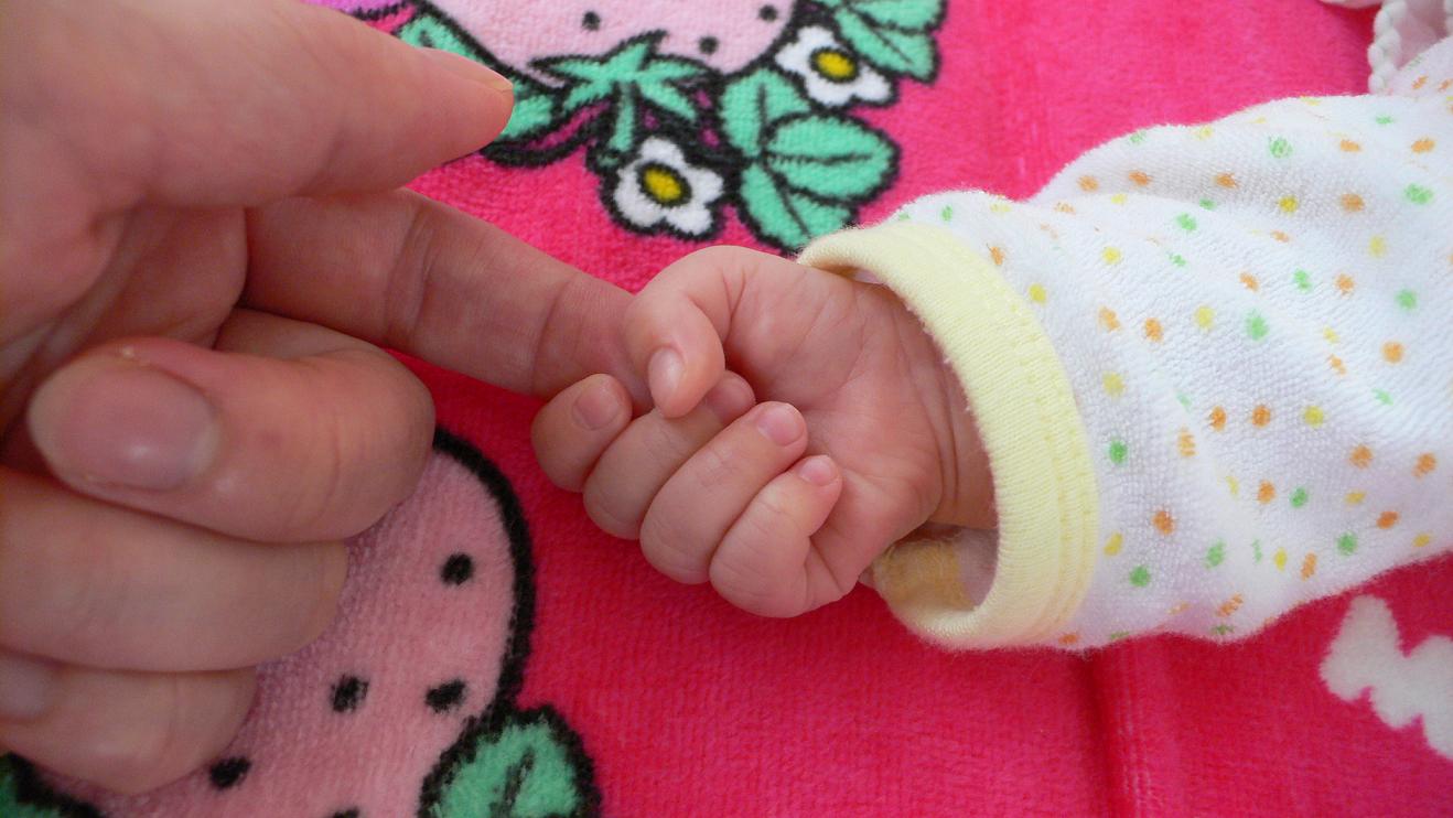 にした自分の手を一生懸命口に入れて、はむはむしています
